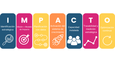 Cada letra de IMPACTO® representa una fase estratégica.